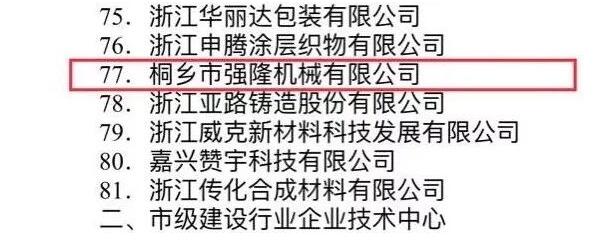 دفتر دولتی مردمی شهرداری جیاکسینگ به وضوح خاطرنشان کرد که به منظور اجرای بیشتر استراتژی توسعه مبتنی بر نوآوری، تقویت ساخت سیستم های نوآوری فناورانه سازمانی، بهبود قابلیت ها و سطوح نوآوری فناورانه شرکت ها، و ارتقاء تحول و ارتقاء اقتصادی. بنابراین، دولت مردمی شهرداری جیاکسینگ 84 شرکت را به عنوان مرکز فناوری سازمانی شهرداری جیاکسینگ در سال 2017 ارزیابی کرده است. باعث افتخار است که شرکت ما-Tongxiang Qianglong Machinery Co., Ltd. در لیست قرار دارد.